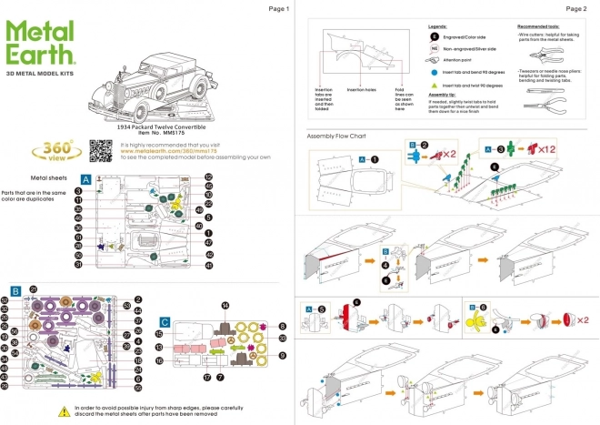 Pojedine dijelove izvadite iz metalnih pločica; po potrebi upotrijebite male kliješta-rezačice (nisu uključene). Dijelovi se međusobno spajaju pomoću zasuna koji se sastoje od jezička i otvora. Jezičak savijte malim tankim kliještima (nisu uključena) i postupno spojite sve zasune dok ne nastane vrlo realističan majstorski komad!