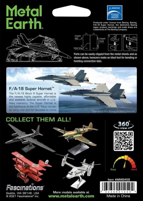 Set za izradu fascinantnog metalnog 3D modela. Sastavljanje METAL EARTH puzzli zahtijeva strpljenje i spretne ruke. No rezultat u potpunosti opravdava uloženi trud. Minijaturne replike dojmljiva su i privlačna dekoracija. Iz kvadratnih čeličnih pločica pod vašim će rukama nastati detaljno razrađeni, fascinantni modeli. Autentičan izgled 3D puzzli METAL EARTH postiže se zahvaljujući preciznom laserskom graviranju. Alat nije uključen u pakiranje. RADNI POSTUPAK: Pojedine dijelove izvadite iz metalnih pločica; po potrebi upotrijebite male kliješta-škarice za rezanje (nisu uključene). Dijelovi se spajaju pomoću zasuna koji se sastoje od jezička (kukice) i otvora. Jezičak savijte malim tankim kliještima (nisu uključena) i postupno spojite sve zasune dok ne nastane vrlo realistično remek-djelo!