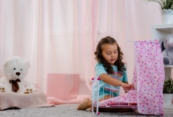 Lagana tkanina s baldahinom daje kolijevci privlačan izgled i potiče maštu tijekom igre.