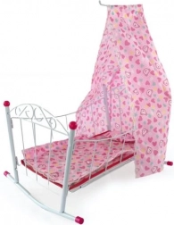 Šarmantna metalna kolijevka za lutke do veličine 38 cm pretvara dječju sobu u mali kutak za njegu. Nudi stabilnu metalnu konstrukciju, tekstilnu navlaku s baldahinom i set meke posteljine – tanku poplun-dekicu i mali jastučić – za realistično igranje mame i umirujuće uspavljivanje lutke.