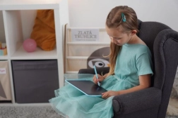 Tablet ima tanko, moderno izvedenje koje se ugodno drži i stane u ruksak. Stylus omogućuje precizno vođenje linija i ostavlja čistu površinu bez nereda. Šareni LCD panel potiče kreativnost i učenje na zabavan način, kod kuće i na putu.