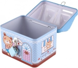 Veseli motivi životinjica i prozorčići kućice čine kasicu simpatičnom dekoracijom dječje sobe i potiču redovito odlaganje kovanica.