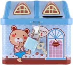 Ova limena kasica u obliku kućice idealna je za prve korake prema pravilnom upravljanju novcem. Zahvaljujući zaključavanju na ključ ušteđeni novac ostaje siguran, a utor na gornjoj strani olakšava redovitu štednju. Šarene ilustracije i razigran dizajn motiviraju djecu da svakodnevno odlažu sitniš.