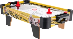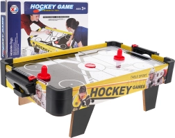 Cymbergay - stol za air hockey za djecu od 3 godine. AIR HOCKEY je popularna arkadna igra namijenjena za dva igrača. Za igru se koristi posebno pripremljen stol. Površina stola prekrivena je otvorima kroz koje se upuhuje zrak. Time se stvara zračni jastuk po kojem pak klizi bez dodira s podlogom. Igrači stoje s suprotnih strana stola. Svaki igrač koristi poseban plastični alat, ponekad nazvan “spužva”, koji služi kao palica. Tim alatom igrači udaraju pak. Cilj igre je ubaciti pak u protivnički gol. Pak se kreće velikom brzinom. Igra obično završava kada jedan od igrača postigne unaprijed određen broj bodova (obično sedam ili devet) ili po isteku zadanog vremenskog ograničenja. Tablica | |