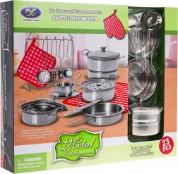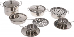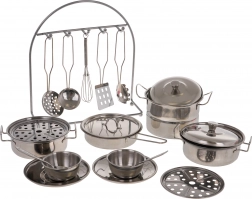 Lonac, veliki lonac, tava i poklopci od metala zvuče i izgledaju kao pravi. Djeca tako uvježbavaju vještine i uče sigurne navike pri „kuhanju“. Jednostavno čišćenje i visoka izdržljivost osiguravaju dugu zabavu.