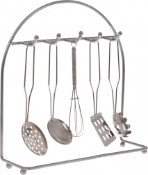 Praktično postolje drži pjenjaču, kutlaču, šuplju žlicu, lopaticu i ostali pribor uredno obješene. Djeca se lako uče redu i pravilnim navikama u kuhinji.