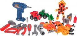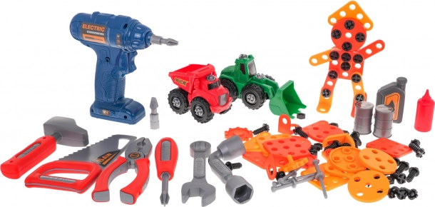 Sastavni dio je širok set alata: bušilica s bitovima, pila, čekić, odvijač, ključevi, kliješta, deseci vijaka, tipli i podložaka te zupčanici za prvo upoznavanje s mehanikom. Zahvaljujući velikom broju dijelova i oblikovnih ploča djeca vježbaju strpljenje, logiku i koordinaciju.