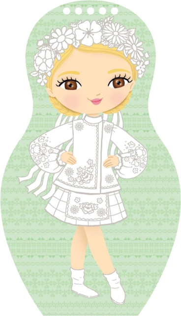 Ova popularna serija knjiga donosi djeci jedinstven spoj stvaralaštva i upoznavanja svijeta. S lutkicom Alinom djeca će osmisliti bezbroj odjevnih kombinacija, obojiti tradicionalne uzorke i zalijepiti modne dodatke. Uključeni su i kratki tekstovi s činjenicama o običajima, školi, hrani i pozdravima u Ukrajini – razigran način učenja koji zabavlja.
