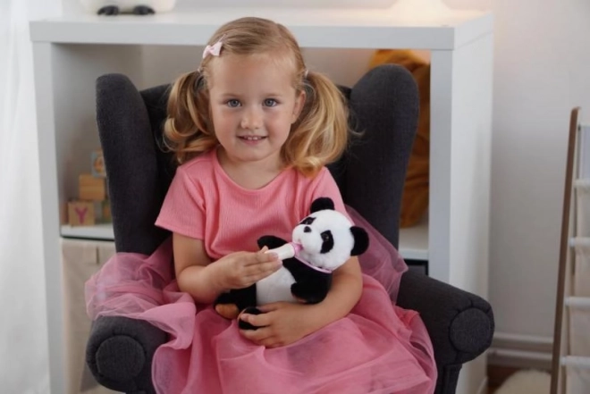 Ova mekana panda idealan je prijatelj za maženje i igru. Zahvaljujući jednostavnoj interakciji s bočicom, djeca mogu isprobati brigu i razvijati empatiju i finu motoriku. Panda ima meku plišanu površinu i stabilno sjedi, pa je izvrsna za dječju sobu i za putovanja.