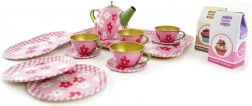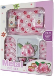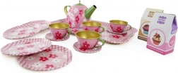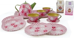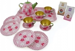 Ovaj metalni set posuđa donosi djeci zabavu i kreativnost tijekom igre na čajanku. Sadrži sve važne elemente potrebne za savršenu igru, kao što su pladanj, čajnik, šalice, tanjurići, desertni tanjurići i dvije makete hrane.