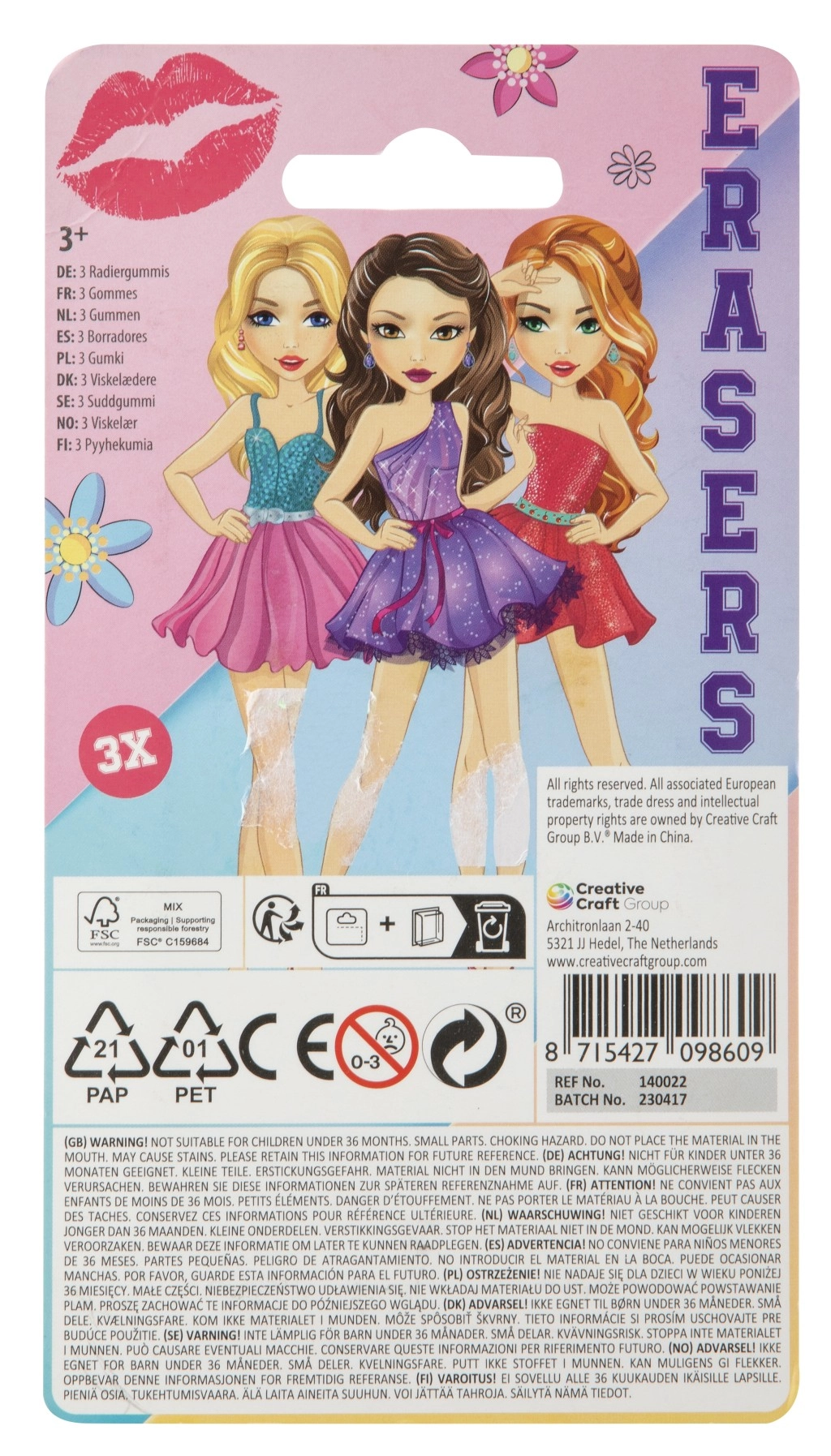 Set od tri gumice u obliku ruža za usne Besties nudi tri različite boje za zabavno brisanje sitnih pogrešaka.
