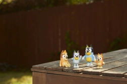 Četiri omiljene figurice iz serije BLUEY na okupu – spremne za oživljavanje scena i stvaranje novih priča.