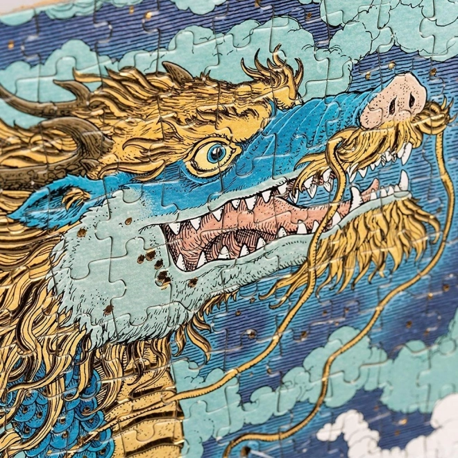Otkrijte iznimne metalik puzzle koje zahvaljujući posebnoj površini stvaraju dojam zlata, srebra i drugih sjajnih metala. Motiv nebeskih zmajeva doslovno oživljava čim na njega padne svjetlo te se mijenja ovisno o kutu gledanja.