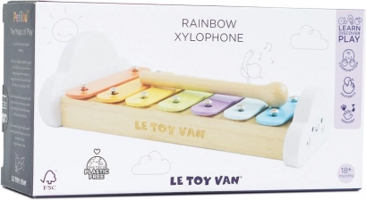 Dječji dugin ksilofon LE TOY VAN idealan je izbor za prve glazbene korake. Zahvaljujući ugodnom zvuku i sigurnim materijalima potiče prirodnu znatiželju djece te pomaže u razvoju osjećaja za ritam i melodiju. Dizajn s oblačićima osvaja na prvi pogled i odlično se uklapa u dječju sobu.