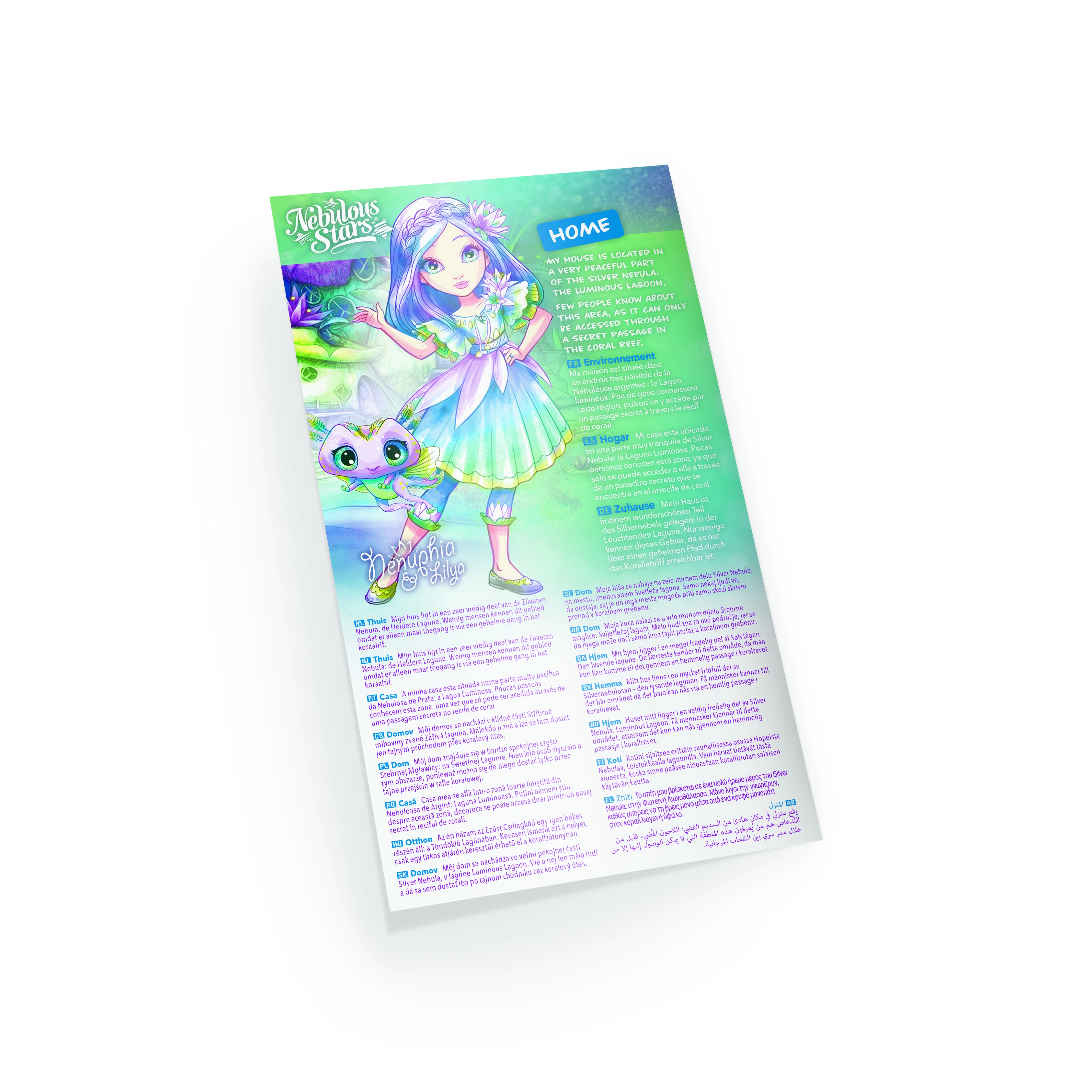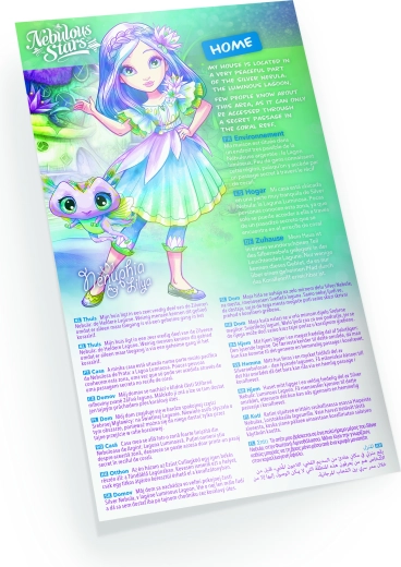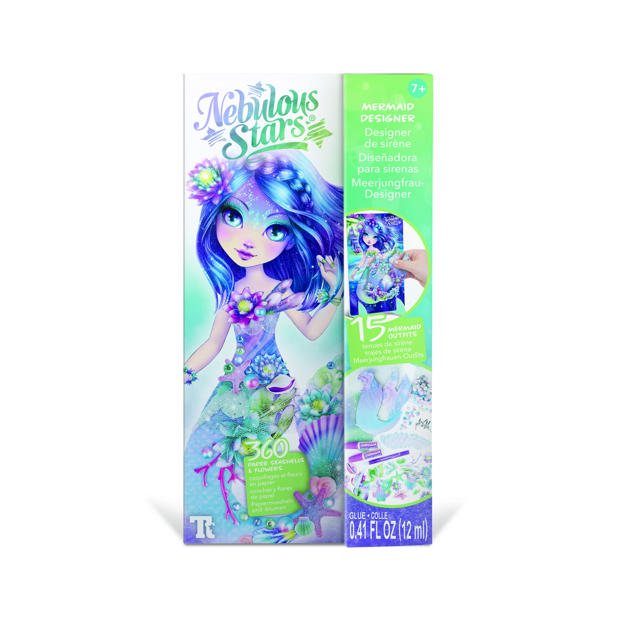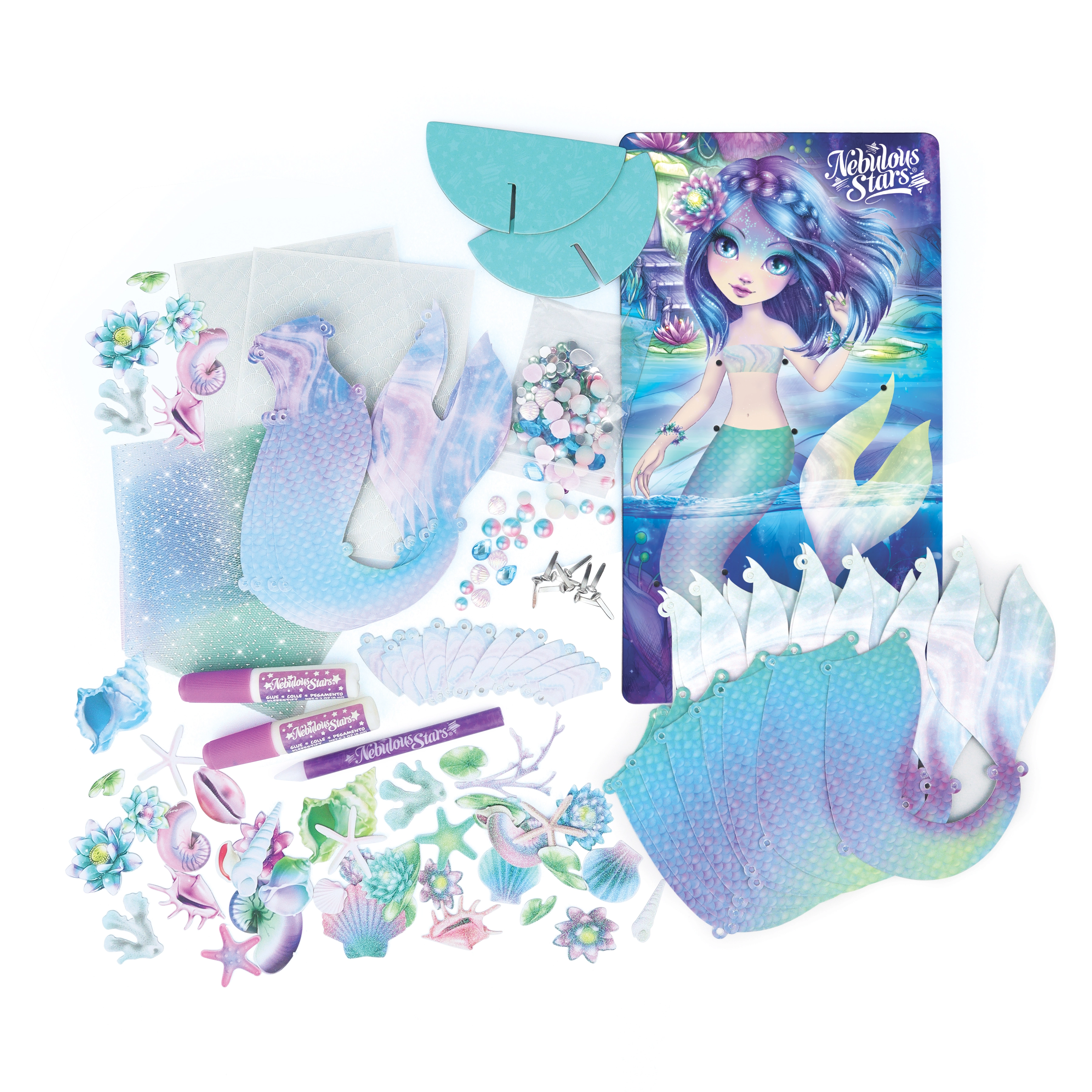 Odjenite čarobnu morsku vilu Nenuphiu u vlastite stilove s ovim kreativnim setom NEBULOUS STARS. Djeca će uživati u stvaranju zahvaljujući 25 papirnatim šablonama, 360 papirnatim školjkama i cvjetovima, kamenčićima i ukrasnim pribadačama. Dio seta je i kartonski stolić/postaolje, pečati, ljepilo, vrpca i aplikator za drago kamen-olovku za jednostavno ukrašavanje.