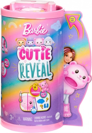 Lutka Barbie Chelsea Cutie Reveal donosi zabavu punu raspakiravanja i otkrivanja. U pakiranju ćete pronaći malu lutku Chelsea skrivenu u plišanom medvjedić kostimu, stilske dodatke i mini ljubimca. Gornji dio kostima može se okretanjem pretvoriti u pufasti kaput, a glava kostima u ležaj za ljubimca.