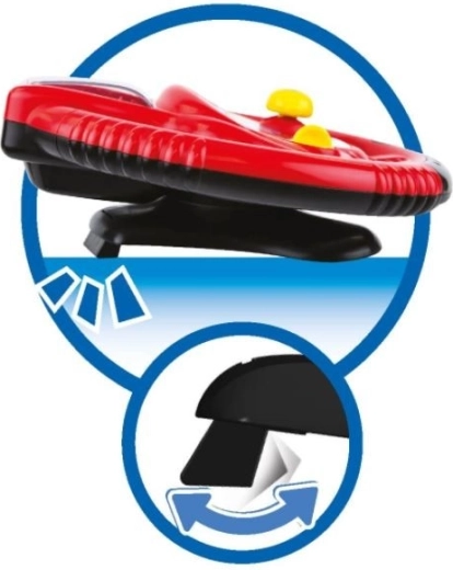 Automobil sa svjetlećim svjetlima kreće se po pokretnom zaslonu. Zahvaljujući trubi dijete može trubiti i upozoravati nedisciplinirane vozače. Volan ima podesivo postolje.