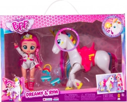 S lutkom BFF Dreamy i njezinim jednorogom Rymom igra može biti još zabavnija. Rymov se rog svijetli i proizvodi zvukove kada mu pritisneš glavu. To je čaroban trenutak, a ponovno proživljavanje donosi sjajnu zabavu, osobito zato što Rym može proizvoditi šest različitih zvukova. Dreamy i Rym mogu zauzimati zabavne poze. Dreamy ima dugu, šarenu, sjajnu kosu i staklene oči, a njezina odjeća podsjeća na klizačicu. U kompletu se nalaze i kotačići kako bi Dreamy mogla glumiti vožnju na rolama, te sedlo kako bi Dreamy mogla jahati i na Rymovim leđima. Doživi jedinstvene avanture s Dreamy i Rymom!