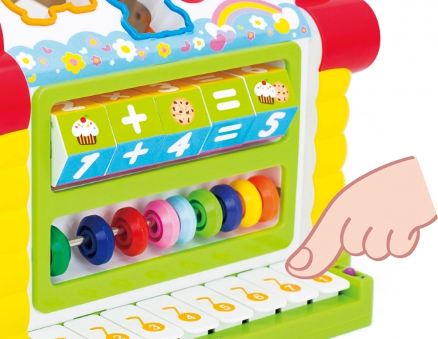 Otkrijte čaroliju interaktivne kućice, koja kombinira zabavu i edukaciju. Ova razigrana kućica pomaže vašem djetetu razvijati finu motoriku i osnovne matematičke vještine kroz raznovrsne aktivnosti kao što su slaganje oblika i sviranje klavira.