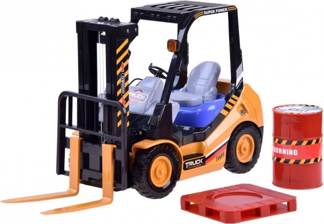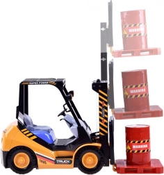 Otkrijte zabavu kao u pravom skladištu. Ovaj vrlo realističan daljinski upravljani viljuškar može podizati i spuštati vilice, voziti naprijed i natrag te glatko skretati. U setu su paleta i bačva s kojima djeca vježbaju preciznost pri utovaru i istovaru. Veliki kotači osiguravaju dobar grip i stabilnost u vožnji.