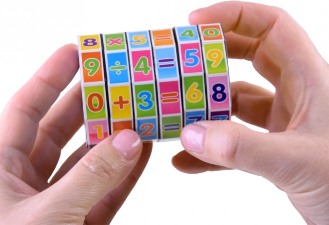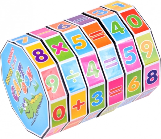 Ovaj matematički valjak odlično je pomagalo za djecu koja uče brojeve i osnovne računske operacije. Rotirajući segmenti s brojevima i simbolima omogućuju slaganje i provjeru jednostavnih zadataka, zahvaljujući čemu djeca lako i zabavno utvrđuju gradivo.