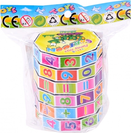 Šarena obrazovna igračka u obliku valjka s rotirajućim prstenovima pomaže djeci vježbati zbrajanje, oduzimanje, množenje i dijeljenje. Kompaktno i zabavno pomagalo razvija logičko razmišljanje, finu motoriku i potiče učenje kroz igru.