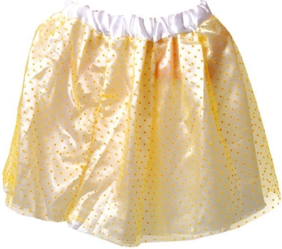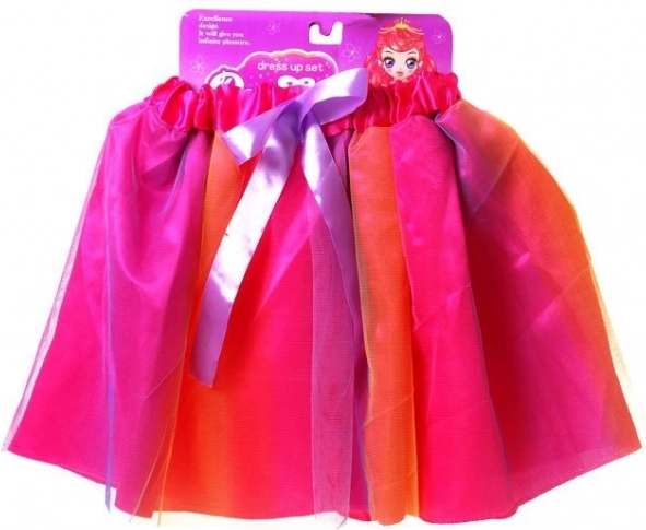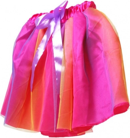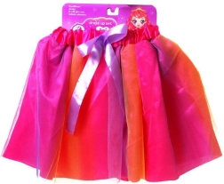 Na izbor su dvije atraktivne kombinacije: ružičasti ombre efekt s ljubičastom mašnom ili žuta s bijelom podstavom i žutim točkicama, dopunjena ružičastom mašnom. Sjajno za fotografiranje, zabave i svakodnevno presvlačenje – suknja potiče maštu i samoizražavanje svake male modne kraljice.