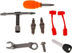 Set sadrži dječji alat: križni odvijač, 3u1 ključ (nasadni + plosnati + križni), 2u1 ključ (plosnati + okasti) i druge dodatke. Djeca će na siguran način isprobati osnovne mehaničarske radnje.