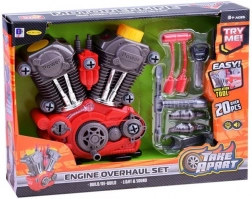 U kompletu je bogat set alata s kojim se motor može iznova rastavljati i sastavljati. Sve je izrađeno od izdržljive plastike kako bi igra dugo trajala i bila lako upravljiva i za male ruke. Odličan prijedlog za poklon koji potiče finu motoriku, strpljenje i kreativno razmišljanje.
