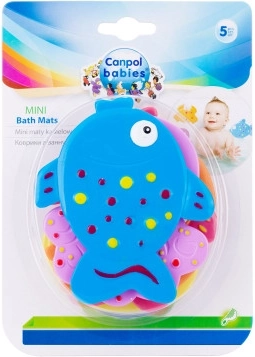 Protuklizne mini podloge Canpol babies praktičan su dodatak za kupanje. Jednostavno se pričvršćuju pomoću vakuumskih čepića (prijanjalica). U pakiranju je 5 komada šarenih životinjica. Sprječavaju slučajno proklizavanje ili pad tijekom kupanja. Šareni uzorci i motivi potiču djecu na kupanje. Prijanjalice učinkovito sprječavaju pomicanje podloge te omogućuju da se životinjice lako pričvrste i na stijenku kade ili tuš kabine. Životinjice su izrađene od visokokvalitetne gume. Upute za upotrebu: Održavajte u čistoći. Prije prve i nakon svake sljedeće upotrebe operite podlogu u toploj vodi blagim sredstvom za čišćenje, temeljito isperite i ostavite da se osuši. Ne prokuhavati! Upozorenje! Važno za sigurnost i zdravlje vašeg djeteta! Prije svake upotrebe provjerite kvalitetu proizvoda. Pri prvim znakovima trošenja ili oštećenja nemojte dalje koristiti proizvod – zamijenite ga novim. Upozorenje! Proizvod nije igračka. Čuvajte izvan dohvata djeteta. Ne ostavljajte dijete bez nadzora odrasle osobe tijekom kupanja. Protuklizne podloge udovoljavaju zahtjevima: Direktive Europskog parlamenta i Vijeća 2001/95/EC o općoj sigurnosti proizvoda.