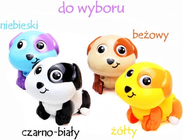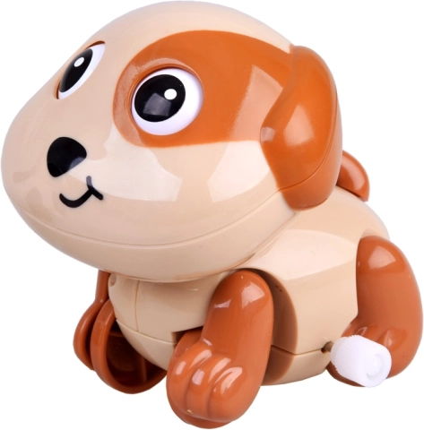 Sladak navijajući psić razveselit će svaku bebu i malo dijete. Dovoljno je naviti oprugu i psić će se sam pokrenuti, pri vožnji miče očima i repom. Potiče kretanje, puzanje i praćenje igračke, lagan je i pristaje u male ručice.