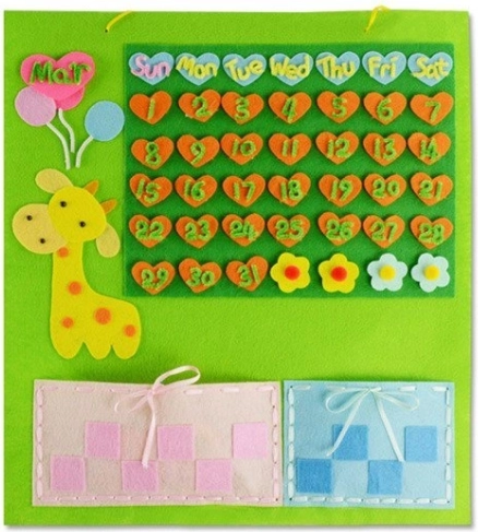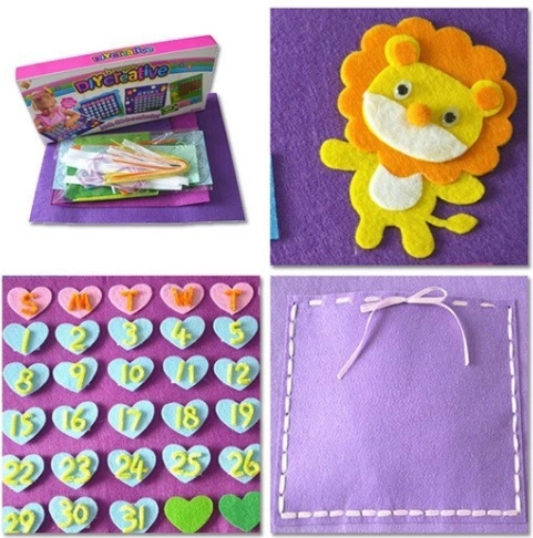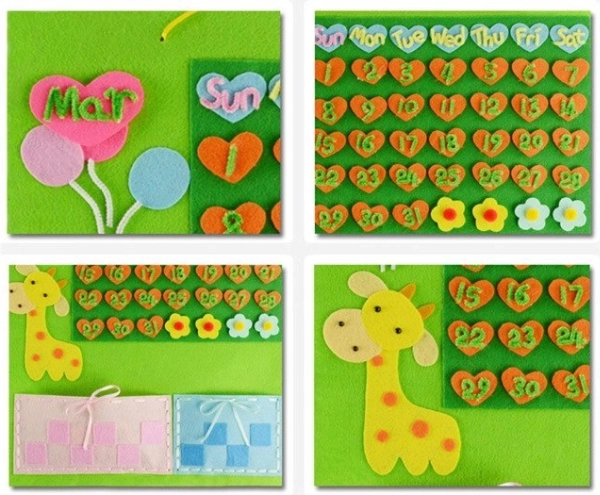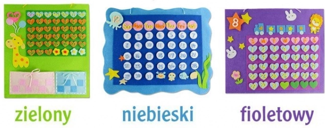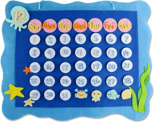 Ovaj tekstilni kreativni set omogućuje djeci da osmisle i ukrase vlastiti zidni kalendar. Zahvaljujući šarenim filcanim dijelovima, samoljepljivim elementima i ukrasima, djeca lako slože pregled dana i datuma te pritom razvijaju maštu i strpljenje. Gotov kalendar odlično pristaje u dječju sobu i pomaže u dnevnoj rutini.