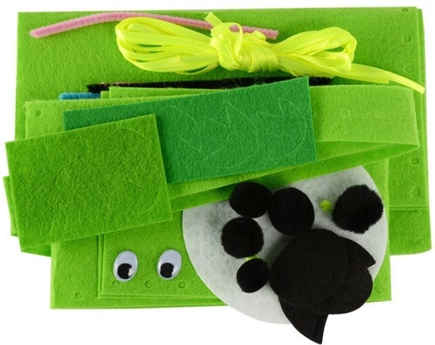 Šareni izrezci, konac, velika plastična igla i ukrasni dodaci – ne trebate ništa dodatno. Idealno kao poklon.