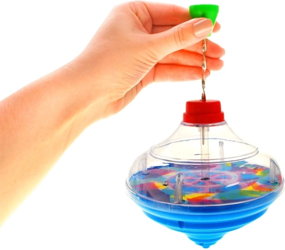 Tradicionalna igračka u modernom izdanju: šarena čigra koja se pri okretanju svijetli i reproducira veselu glazbu. Jednostavno upravljanje pritiskom klipa zavrti čigru oko vlastite osi, a ispod prozirnog pokrova stvara očaravajući dugin efekt. Izdržljivo plastično kućište, idealno za razvoj fine motorike i koordinacije.