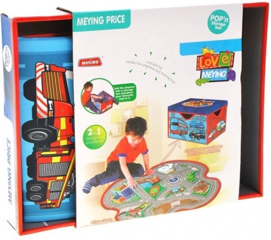 Pametno rješenje za dječju sobu: nakon rasklapanja dobivate prostranu igraću podlogu s motivom grada, a kad je složite, stabilnu kutiju za kolekciju autića i druge sitne igračke. Dvostrani tekstilni materijal ugodan je na dodir, a ojačane stijenke drže oblik.