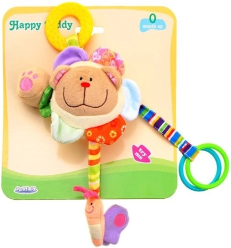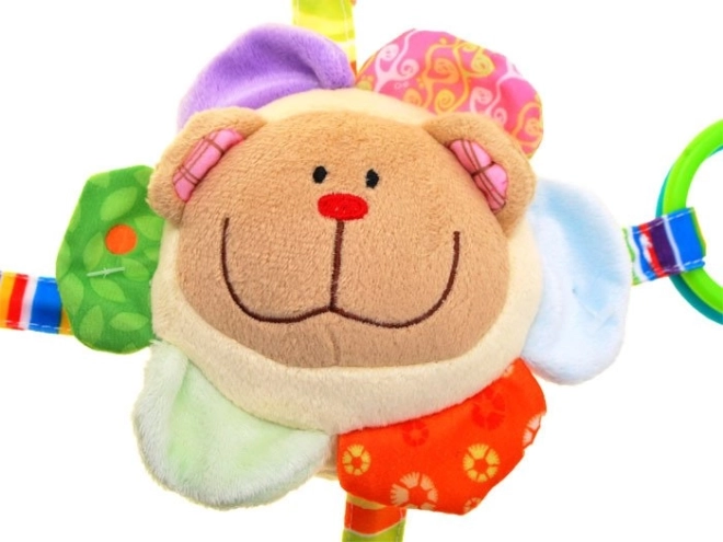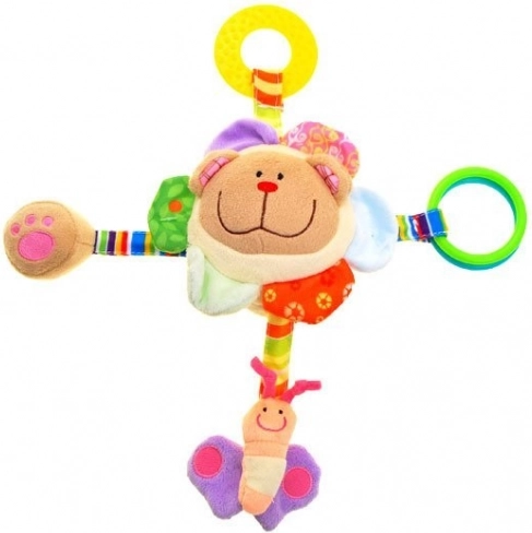 Ova viseća igračka osmišljena je za znatiželjne bebe. U sredini se nalazi prijateljsko lice medvjedića okruženo šarenim laticama, od kojih svaka skriva iznenađenje. Listići su izrađeni od različitih materijala: šuškavih, mekanih, glatkih – što djetetu omogućuje otkrivanje i razvoj osjeta dodira i sluha.