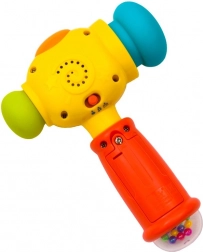 Pritisnite gumb na vrhu i čekić će reproducirati 5 veselih melodija, dok će se svjetlo početi treperiti. Svaki udarac dodatno pokreće zvukove i svjetla koja motiviraju djecu na daljnju igru.