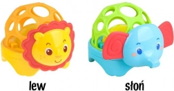 Ova lagana i sigurna igračka u obliku dražesne safari životinjice ima elastičnu, prozračnu konstrukciju s velikim otvorima koji olakšavaju prihvat malim ručicama. Unutra se nalazi kuglica koja pri pokretu svijetli i ispušta vedre zvukove. Meke uši ili griva potiču na dodir i grickanje te podupiru osjetilnu percepciju.