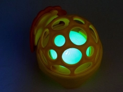 Izdržljiv materijal nakon stiskanja vraća se u prvotni oblik i podnosi svakodnevnu igru – stiskanje, bacanje, kotrljanje i žvakanje. Igračka prirodno razvija koordinaciju oko–ruka, potiče refleks hvatanja i motivira na povlačenje, trešnju i kotrljanje.