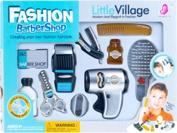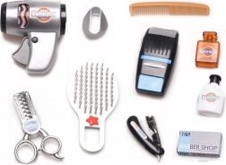 Set uključuje sve potrebne alate za igru frizerskog salona, od škara za šišanje do bočica šampona i kolonjske.