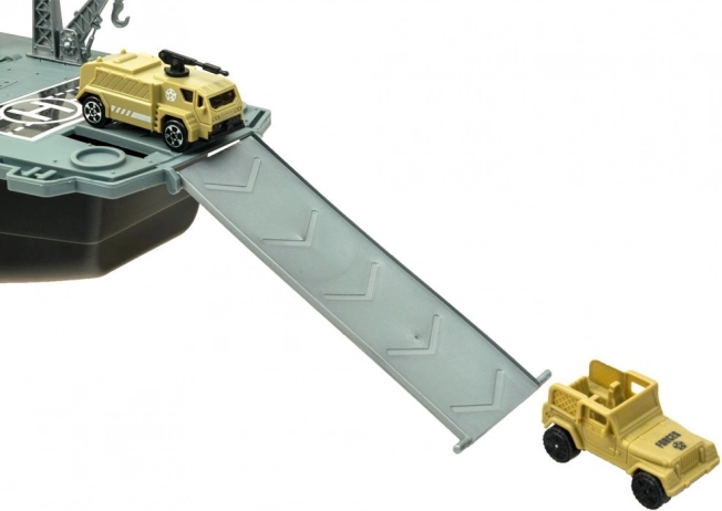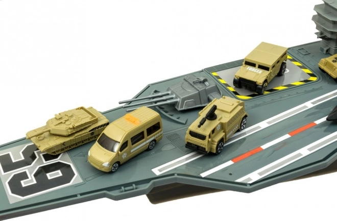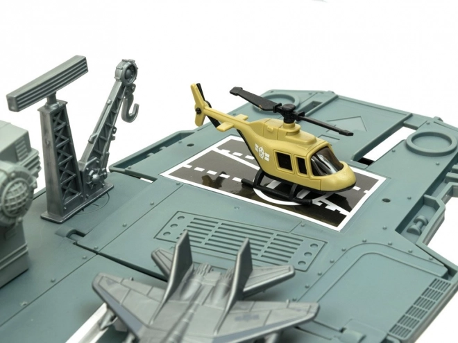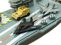Nosač zrakoplova nadopunjen borbenim avionima, helikopterom, tenkom, dodatnim vozilima i figuricama vojnika osigurava bezbroj scenarija za igru i sate zabave.