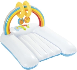 Iznad podloge nalazi se šareni nosač s dvije piskajuće igračke koji privlači djetetovu pažnju i olakšava presvlačenje. Nakon ispuštanja zraka lako se sklapa u mali paket – savršeno rješenje za putovanja, godišnji odmor i posjete.