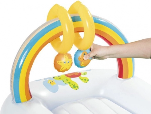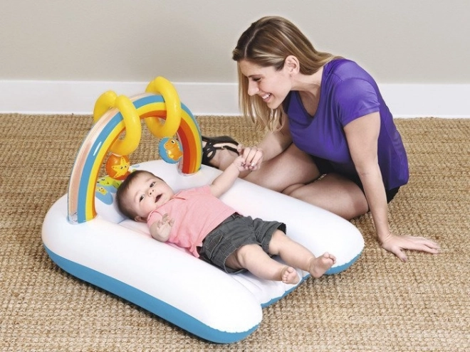 Napuhavajuća podloga za presvlačenje Bestway idealan je izbor za roditelje koji žele spojiti udobnost, sigurnost i jednostavnu prenosivost. Podloga je izrađena od izdržljivog testiranog vinila, ima sigurnosne ventile i meko napuhavajuće dno koje ublažava pritisak i povećava udobnost bebe.