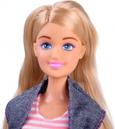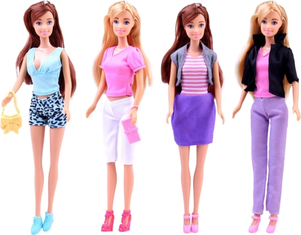 - Lutka, više komada odjeće (haljine, majice, hlače), više parova cipela, torbica, frizerski dodaci (sušilo, pegla, škare, raspršivač), češalj, zrcalce