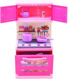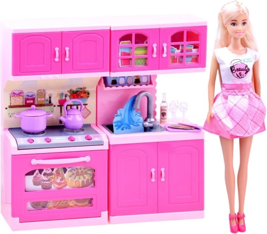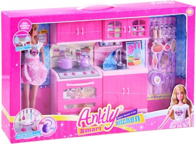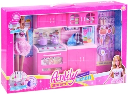 Uz ovaj prekrasni set djeca lako stvaraju vlastiti kulinarski svijet. Lutka ANLILY u pastelnim haljinama s pregačom i detaljno izrađena ružičasta kuhinjica s pećnicom, sudoperom, ormarićima i štednjakom nude sate zabave i realistično oponašanje kuhanja.