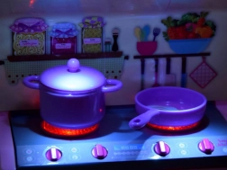 Tave, lonci, čajnik i tanjuri – sve što djeca trebaju za oponašanje stvarnih aktivnosti.