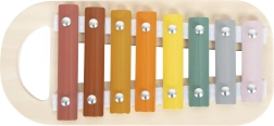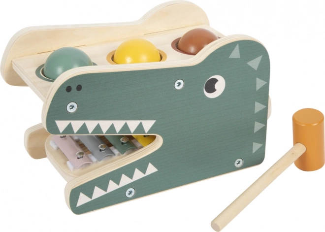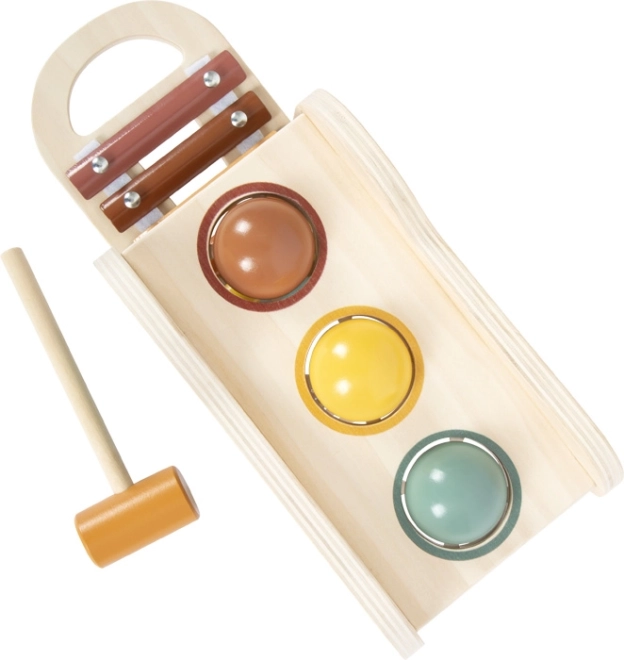 Ova drvena igračka spaja multifunkcionalnu igru s lijepim dizajnom. Djeca čekićem prokunjaju tri obojene loptice kroz otvor i njihovim kotrljanjem aktiviraju tonove ugrađenog ksilofona. Glazbeni dio lako se vadi i koristi zasebno – idealno za prve glazbene korake.