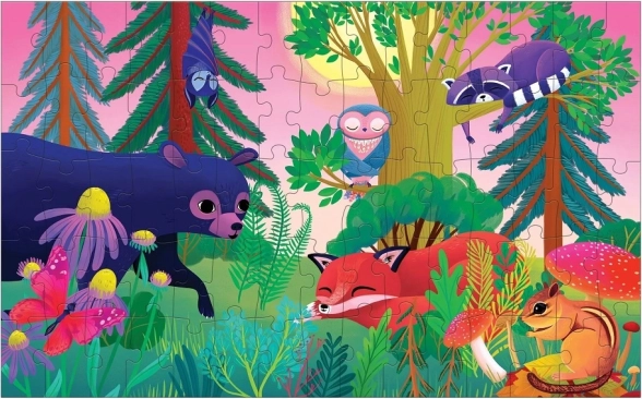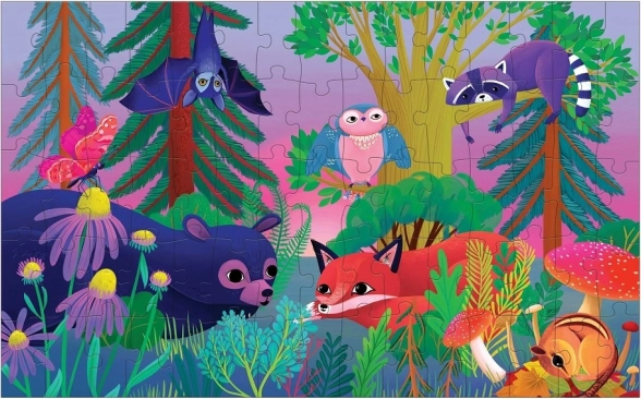 Otkrijte čaroliju promjenjive slike s dječjim puzzlama koje se zahvaljujući lentikularnom efektu mijenjaju iz šume danju u šumu noću. Djeca će uživati u živim bojama, zabavnim šumskim motivima i kvalitetnoj izradi od recikliranih materijala.