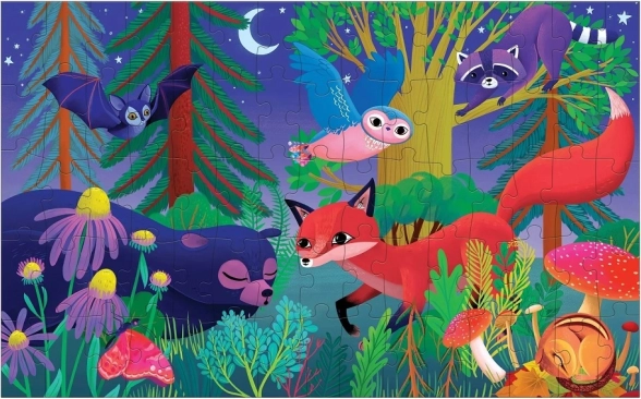 Ove kreativne puzzle sa 75 dijelova oduševit će djecu interaktivnom promjenom motiva – dovoljno je pogledati sliku iz drugog kuta i šuma se prebacuje iz dana u noć. Zahvaljujući preciznom tisku netoksičnim bojama i mat završnoj obradi istaknut će se detalji i žive nijanse.