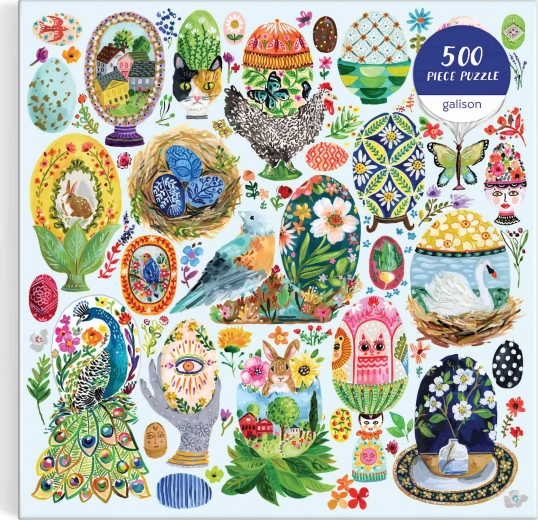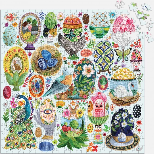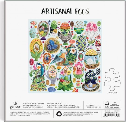 Šarena slagalica od 500 dijelova s motivom oslikanih uskrsnih jaja. Reciklirani materijali, netoksične tinte, dimenzije nakon slaganja 50,8 × 50,8 cm.
